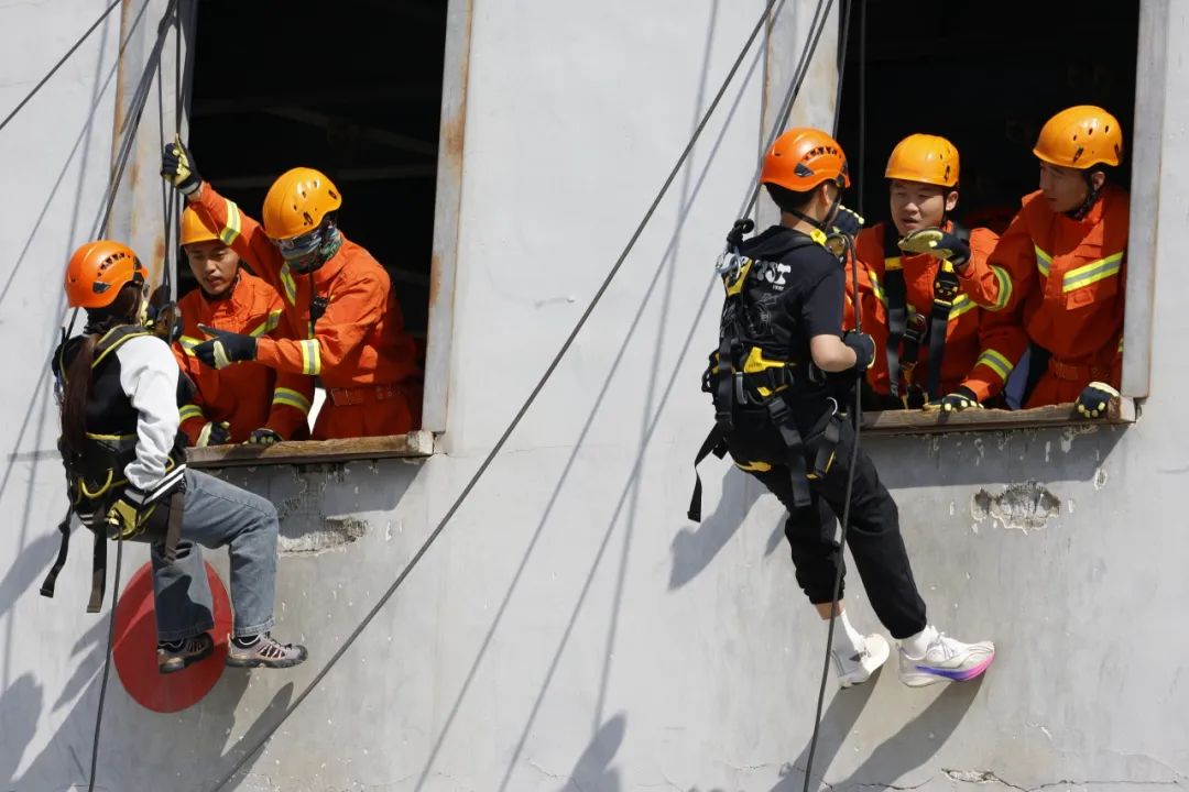 地震救援互动区域,前来体验的市民群众被穿戴的专业装具闷得汗流不止,瞬间袭来的失重感更是“雪上加霜”,加之空间狭小,逃生路线阻碍重重,在学习救援知识技能的同时,也亲身感受到救援人员的艰辛与不易。