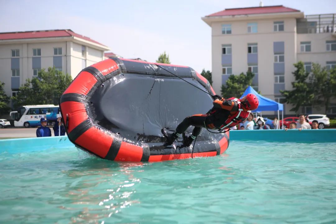 山岳和水域救援互动区域,不仅有高空索降带来的惊险刺激,岸上抛绳包、高精度破拆、医疗救护、心肺复苏等项目也让现场参与者直呼“过瘾”。