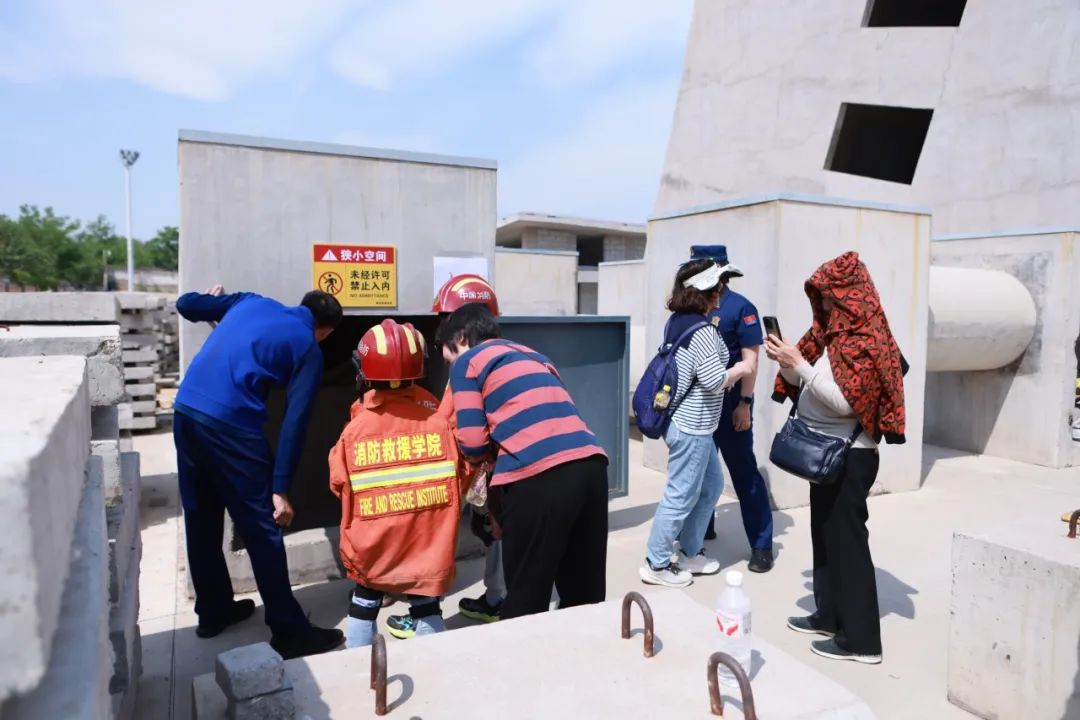 地震救援互动区域,前来体验的市民群众被穿戴的专业装具闷得汗流不止,瞬间袭来的失重感更是“雪上加霜”,加之空间狭小,逃生路线阻碍重重,在学习救援知识技能的同时,也亲身感受到救援人员的艰辛与不易。