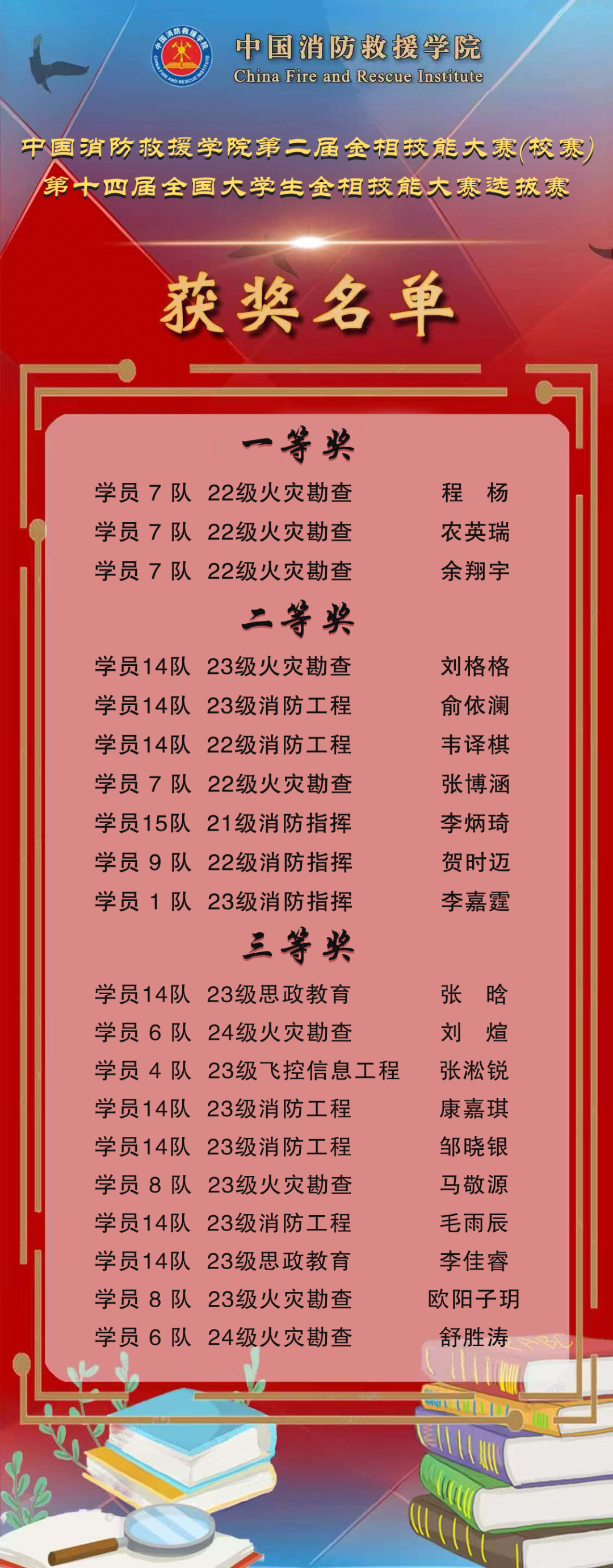 为贯彻落实全国教育大会精神,加强学生动手能力培养和专业技能训练,全面提升学生实践与创新能力。近日,beat365在线唯一官网成功举办第二届金相技能大赛暨第十四届全国大学生金相技能大赛选拔赛。本次赛事吸引了消防指挥、消防工程、火灾勘查、抢险救援指挥与技术、消防政治工作等本科专业的44名学员踊跃参与。经过激烈比拼,最终评选出一等奖3名、二等奖7名、三等奖10名。其中,程杨、农英瑞、余翔宇、刘格格、余依澜、韦译棋等6位获奖学员(成绩排名前六)将代表学院组队参加北京赛区大学生金相技能大赛。