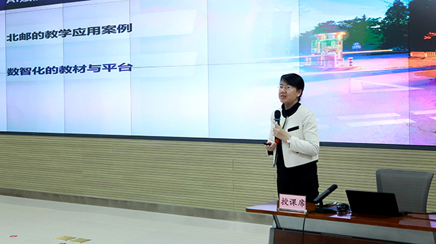 赵慧副处长立足人工智能赋能高等教育教学时代背景,介绍了北京邮电大学的教学应用案例,一一讲解了“码上”“邮大师”“邮百工”“智链”“初发”AI模型的应用,同时介绍了数字教材的发展趋势及应用前景。