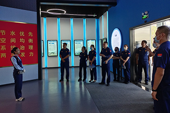 全体党员在现场解说的带领下先后参观了南水北调工程展室、大型实物设备展、团城湖调节池、明渠纪念广场等。大家通过现场讲解,图片展板、视频展示、沙盘模型等形式,了解了南水北调工程的历史沿革和重要战略意义,深刻感受到用水来之不易,为牢固树立节水意识,全力推进节水型校园建设和绿色学校创建注入强大动力。
