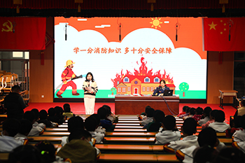 在第32个全国“119”消防日前夕,学院“共建平安校园”特色品牌走进昌平区城北小学教育集团三街校区“养正讲堂”开展消防科普活动。此次活动,学院消防工程系杨玲副教授以“学一分消防知识 多十分安全保障”为主题,为在校低年级学生普及消防基本常识、讲授火灾逃生技巧。